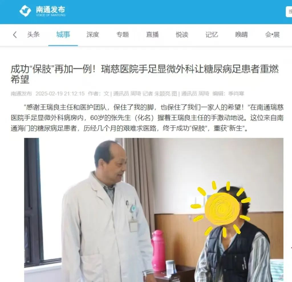 成功“保肢”再加一例! 瑞慈醫(yī)院手足顯微外科讓糖尿病足患者重燃希望