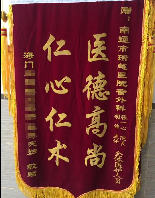 圖為:患者出院時送來錦旗,致謝瑞慈普外科