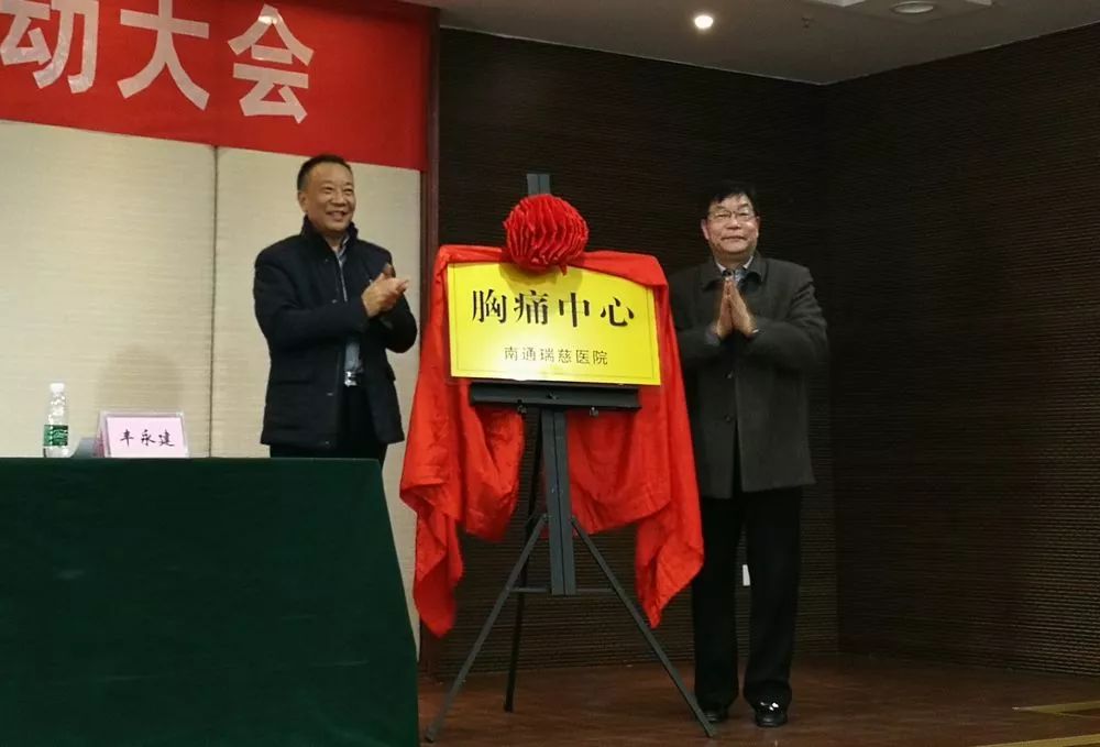開發(fā)區(qū)社會事業(yè)局副局長黃裕若與瑞慈醫(yī)院趙林院長共同為“南通瑞慈醫(yī)院胸痛中心”揭牌。