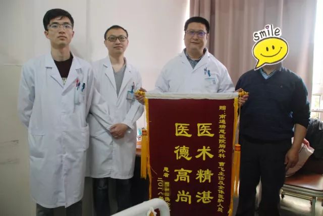 手術(shù)前,家人就悄悄給曹院長(zhǎng)塞了個(gè)紅包,被曹院長(zhǎng)婉言謝絕??吹胶炕謴?fù)得這么順利,一家人心里都深感安慰,出院時(shí)便給胸外科送上了一面錦旗。