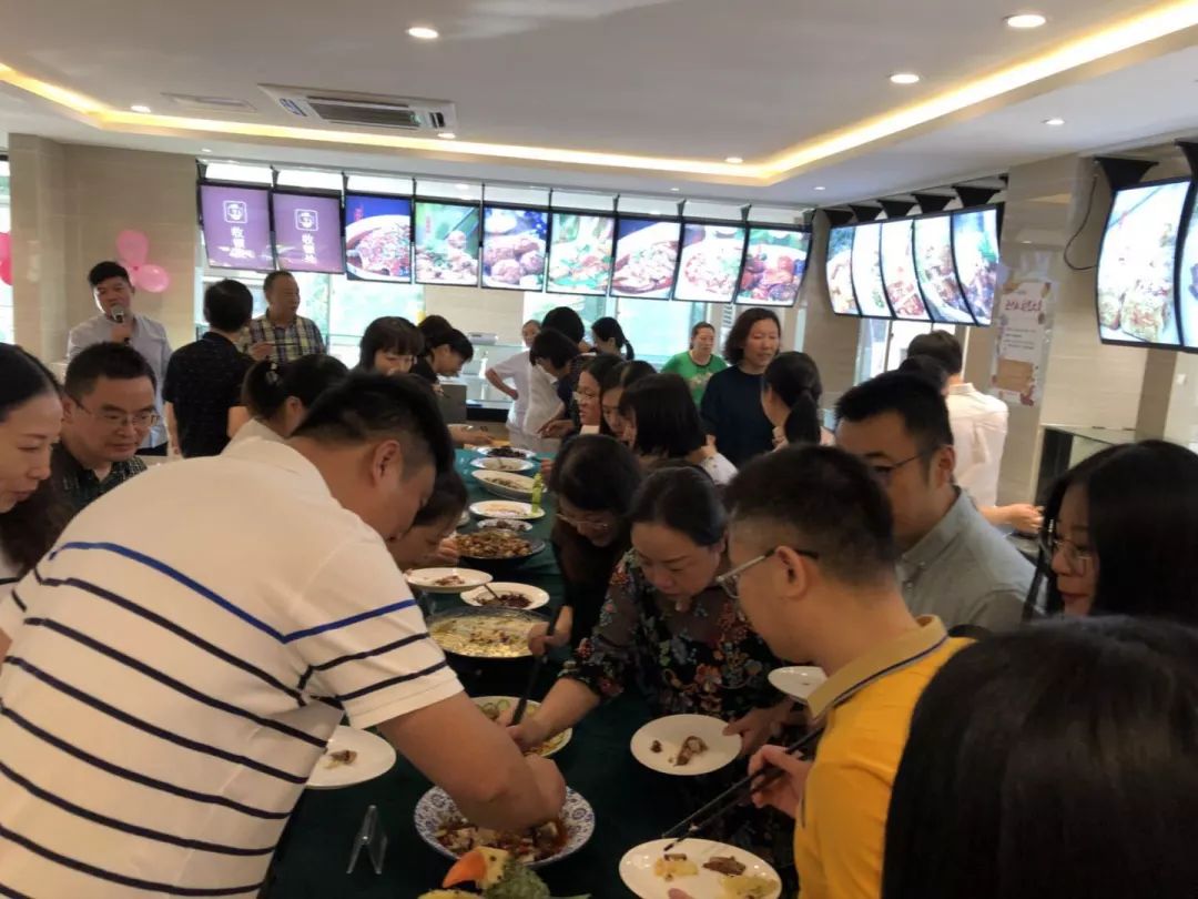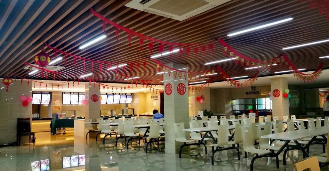 一早員工食堂便布置上了喜慶的中秋裝飾