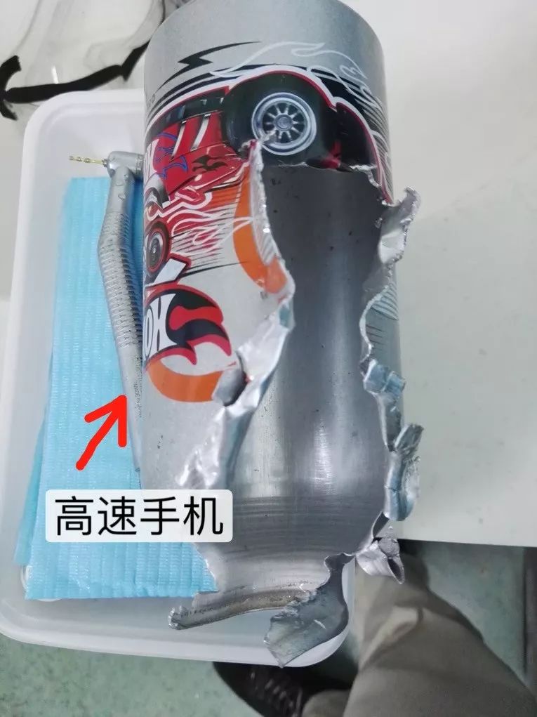 高速手機(jī)是口腔科常規(guī)治療工具中的一種,可以換上不同材質(zhì)、型號(hào)的車針,打個(gè)通俗的比方,就像日常生活中鉆墻打洞的電鉆一樣。高速手機(jī)每分鐘轉(zhuǎn)速能達(dá)到30萬(wàn)轉(zhuǎn)以上,不僅能磨牙齒,也能對(duì)口腔科治療過(guò)程中用到的金屬材料進(jìn)行打磨和切割。因而吳醫(yī)生判斷,高速手機(jī)肯定也能把鋁制水壺切割開。
