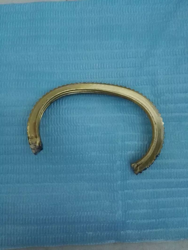 水壺瓶口的合金內(nèi)圈緊緊箍著孩子的舌頭,害怕傷到孩子,吳醫(yī)生換上了能精準(zhǔn)定位,切割深度僅有0.3毫米的金剛砂車針,小心翼翼地將環(huán)切開,卻怎么也掰不開,關(guān)鍵時(shí)刻,消防人員到達(dá)了診室!