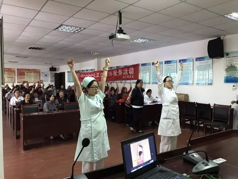 為了提高科普成效,講座還設(shè)置了提問(wèn)互動(dòng)環(huán)節(jié),居民們也積極踴躍參與。其中,雨傘運(yùn)動(dòng)操及8分鐘運(yùn)動(dòng)操視頻播放加現(xiàn)場(chǎng)演示,點(diǎn)燃了全場(chǎng)氣氛。