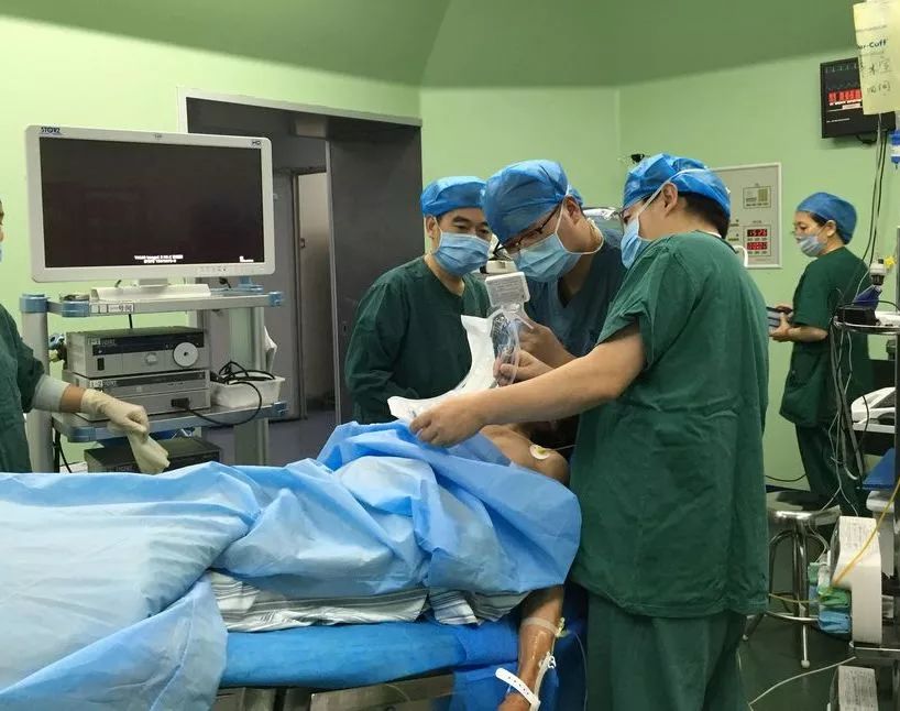 雖然寥寥數(shù)語(yǔ),其中兇險(xiǎn)卻遠(yuǎn)非如此簡(jiǎn)單。首先是麻醉插管,仇大媽屬于困難氣道,因?yàn)榧怪冃?,仇大媽一?cè)肺部已經(jīng)被嚴(yán)重?cái)D壓,氣管嚴(yán)重偏移。所幸借助可視喉鏡,麻醉插管順利完成。麻醉科袁振飛副主任介紹說(shuō),正常的手術(shù)都是患者平躺,醫(yī)生站著手術(shù),腹腔鏡從腹部正面開(kāi)孔操作,仇大媽那天的手術(shù),醫(yī)生則最終另辟蹊徑,從左下腹縫隙往右上腹做,主刀醫(yī)生和患者都是“坐著”完成了手術(shù)。