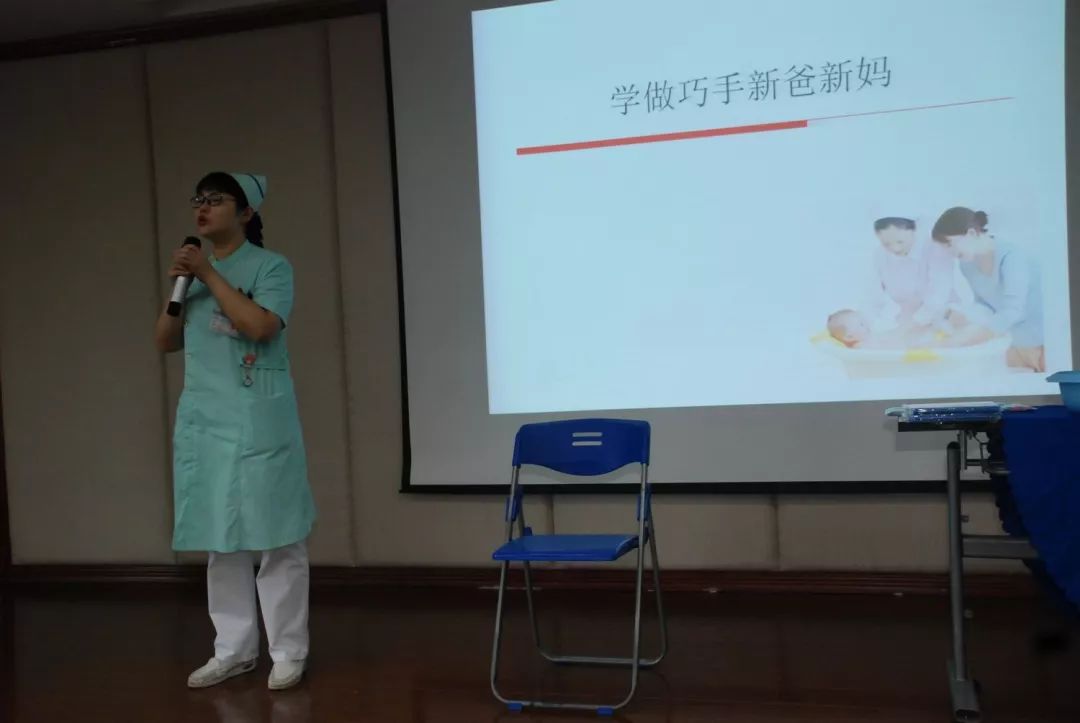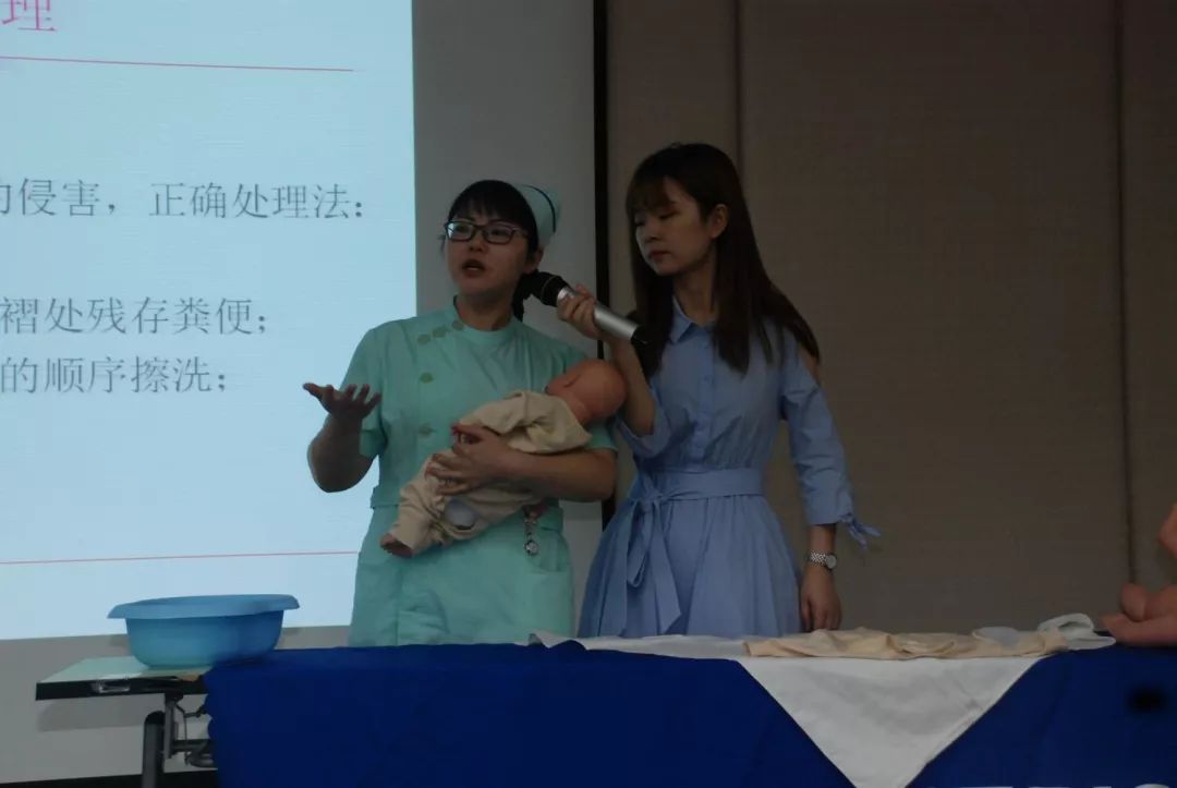 婦產(chǎn)科護(hù)士長(zhǎng)施海燕給準(zhǔn)爸爸準(zhǔn)媽媽們演示如何給寶寶正確進(jìn)行日常護(hù)理。