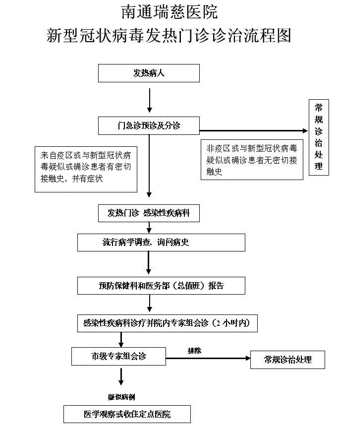 據(jù)省衛(wèi)健委1月24日上午發(fā)布:2020年1月23日18-24時(shí),江蘇省報(bào)告新型冠狀病毒感染的肺炎新增確診病例4例。其中:無(wú)錫市、南通市為報(bào)告首例確診病例。其他2個(gè)設(shè)區(qū)市新增確診病例中,南京市1例,蘇州市1例。截至1月23日24時(shí),江蘇省累計(jì)報(bào)告新型冠狀病毒感染的肺炎確診病例9例,無(wú)重癥病例。其中:確診病例中,南京市3例,無(wú)錫市1例,蘇州市2例,南通市1例,連云港市1例,揚(yáng)州市1例。目前,江蘇省追蹤到密切接觸者143人,已解除醫(yī)學(xué)觀察13人,尚有130人正在接受醫(yī)學(xué)觀察。已經(jīng)從武漢返通的人員請(qǐng)主動(dòng)在家進(jìn)行醫(yī)學(xué)觀察14天,14天內(nèi)不與外人接觸,期間如出現(xiàn)呼吸道癥狀或發(fā)熱應(yīng)第一時(shí)間帶上口罩到醫(yī)院就診,主動(dòng)告知醫(yī)生武漢旅居史。南通瑞慈醫(yī)院新型冠狀病毒發(fā)熱門診就診流程如下↓↓