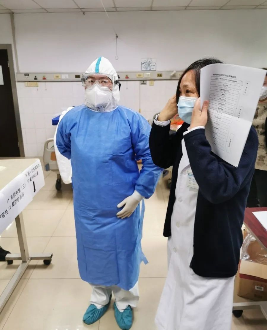“就不告訴爸媽我要走了,老年人本來睡眠就不好。老公在睡覺呢,電話沒打通,我今晚睡在科里值班室,他不知道我今天要走,”每年春晚都要上臺(tái)表演一段小品的徐劉媛不管說什么,都自帶一種喜感,然而對(duì)待工作,她卻是比誰都要認(rèn)真。她的愛人是港閘區(qū)的一名公務(wù)員,自從疫情爆發(fā)以來,也和她一樣,一直在一線忙碌著,對(duì)于她的決定,愛人很支持,而更支持的卻是她的父親。她的父親是一名老黨員,“我要是年輕個(gè)幾十歲,我肯定也去,女兒我絕對(duì)支持你,”她這樣轉(zhuǎn)述父親的話。徐劉媛說自己小時(shí)候的愿望就是長(zhǎng)大要當(dāng)一名軍人,沖鋒在前線?!叭缃袢ズ敝г?,也算是另一種形式的圓夢(mèng)了?!比脒x預(yù)備隊(duì)后,她每天在家跑步、穿著防護(hù)服跳繩,進(jìn)行體能訓(xùn)練。在科里上班時(shí)候,她也穿著防護(hù)服,手上套著兩層橡膠手套給患者打留置針,更早的角色代入,讓她對(duì)自己即將到來的工作也更有了信心。