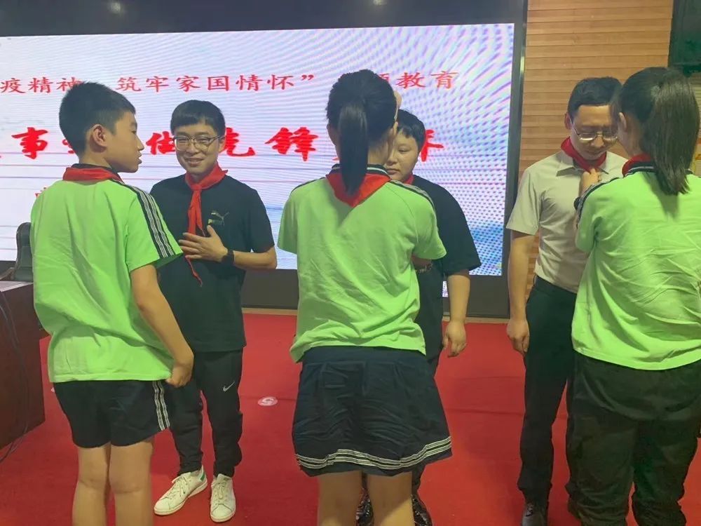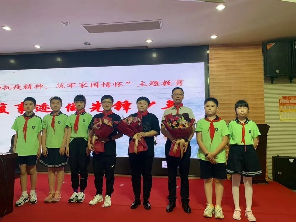 宣講開始前,學生代表為瑞慈援鄂醫(yī)療隊隊員獻上鮮花,戴上鮮艷的紅領(lǐng)巾,表達他們對逆行勇士的熱烈歡迎和崇高敬意。