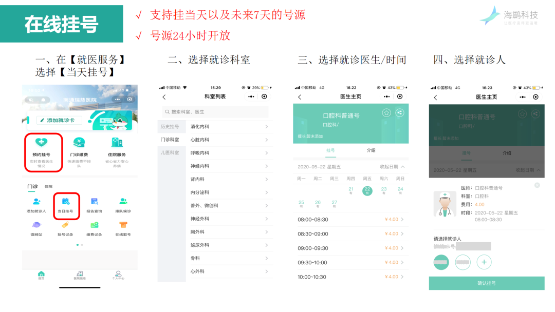3、預(yù)約掛號(hào):預(yù)約掛號(hào)成功之后,在就診前一天晚19:00即可,在手機(jī)上進(jìn)行取號(hào)支付。