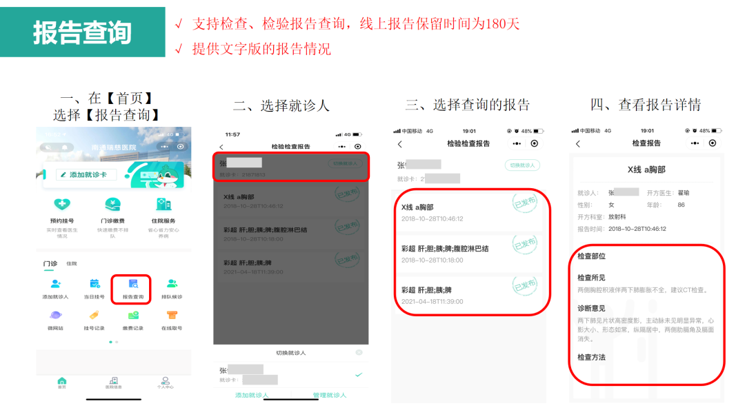 點(diǎn)擊首頁【報(bào)告查詢】-選擇就診人-獲取報(bào)告列表-查看報(bào)告詳情