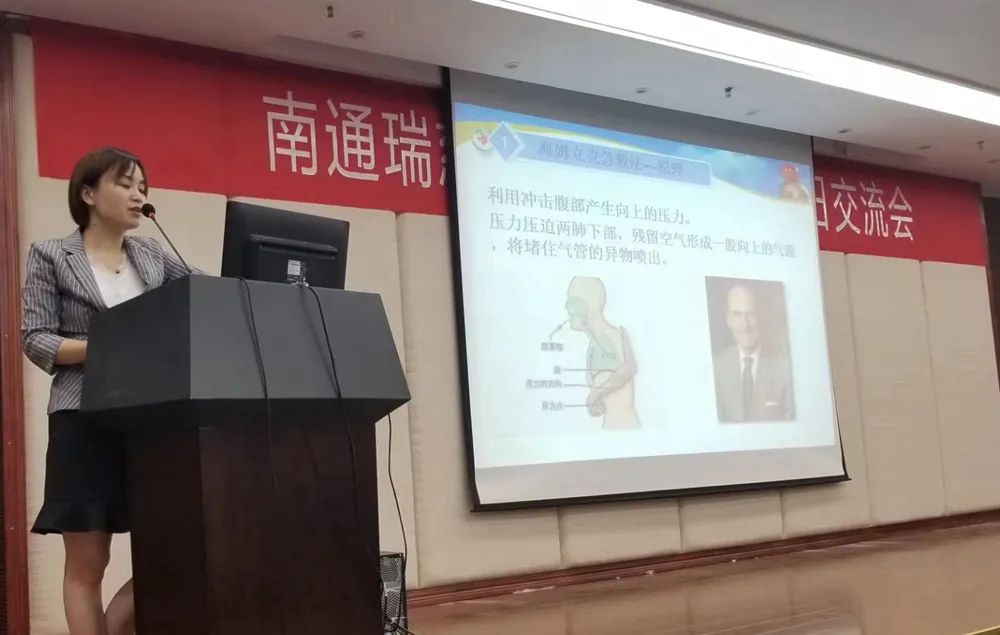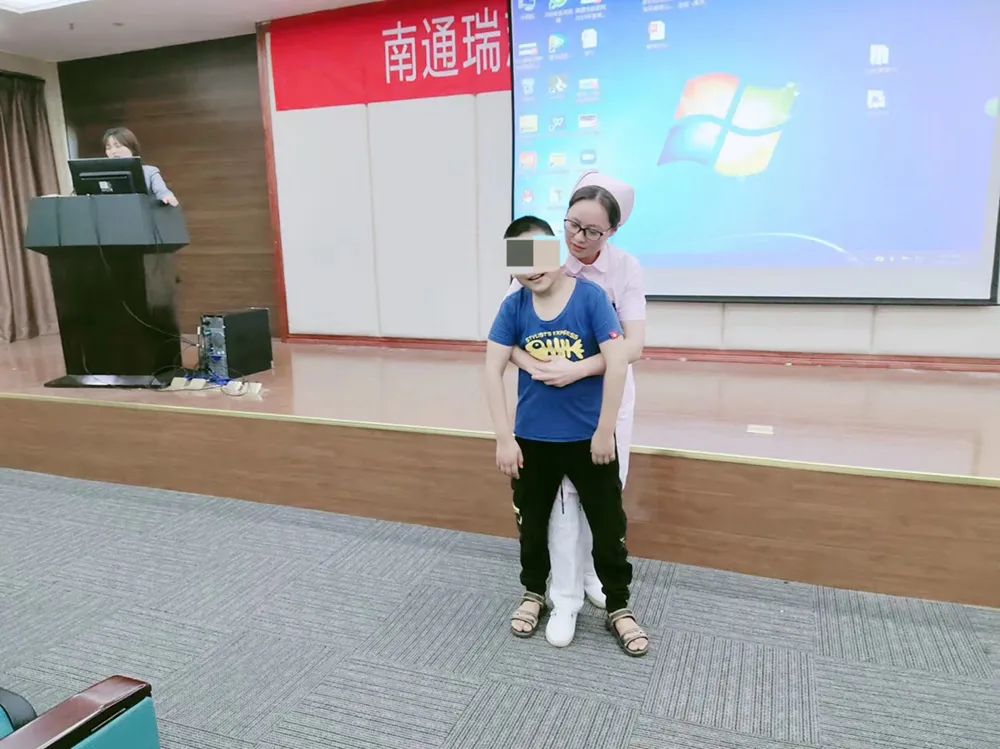 △圖為:護(hù)士和小朋友共同演示“海姆立克”急救法