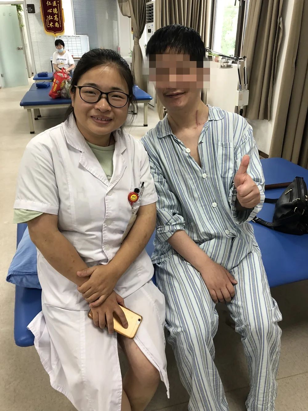 伴隨著右側手臂神經(jīng)的生長,小盧必須要接受8—10個月的針對性康復訓練。這是個漫長的過程,對于身處其中的人來說很不容易。在治療肢體的同時,康復治療師也必須治愈他的心靈。剛開始訓練時,由于術后神經(jīng)痛,這個大小伙兒每天都會被疼哭,幾乎想要放棄??祻椭委煄煹哪托暮图毿?,以及一遍遍的鼓勵,給了他堅持下去的動力,幫助他熬過了那段神經(jīng)疼痛期。