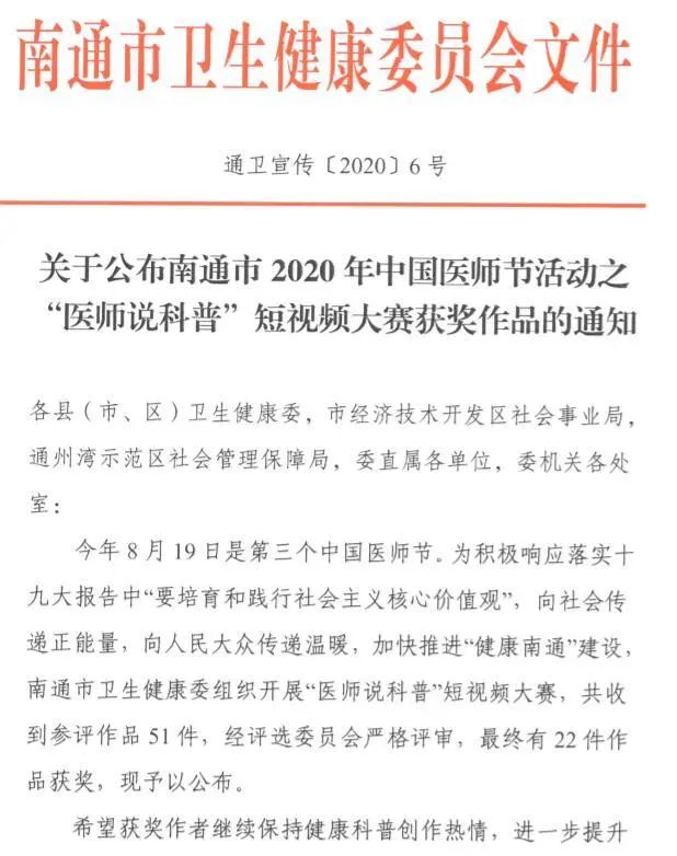 “南通醫(yī)師說科普”短視頻大賽