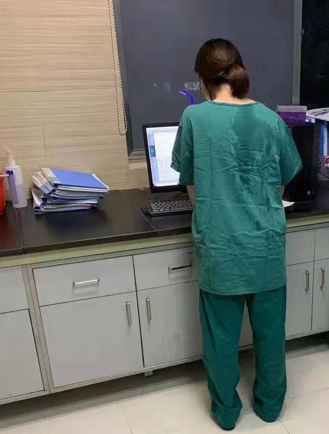 深夜,檢驗人脫下防護服,露出了被汗水浸濕的綠色手術(shù)衣。