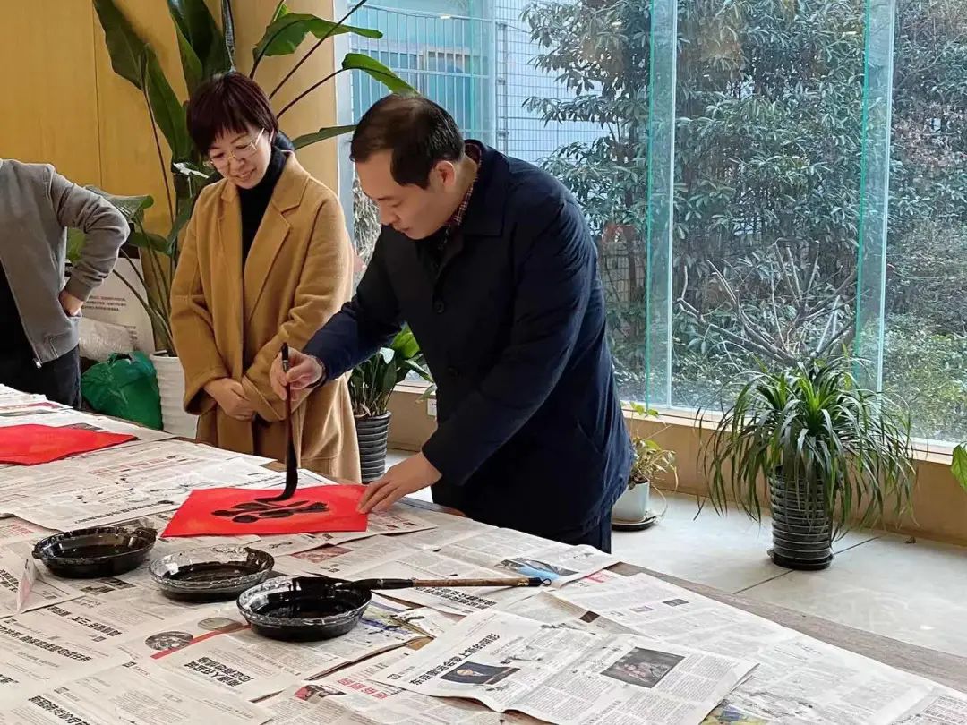 活動(dòng)現(xiàn)場墨韻飄香,書法家們飽蘸濃墨,潤圓筆鋒,一幅幅作品躍然紙上。帶著辭舊迎新的美好祝愿,為即將來臨的春節(jié)增添了濃濃的節(jié)日氛圍。