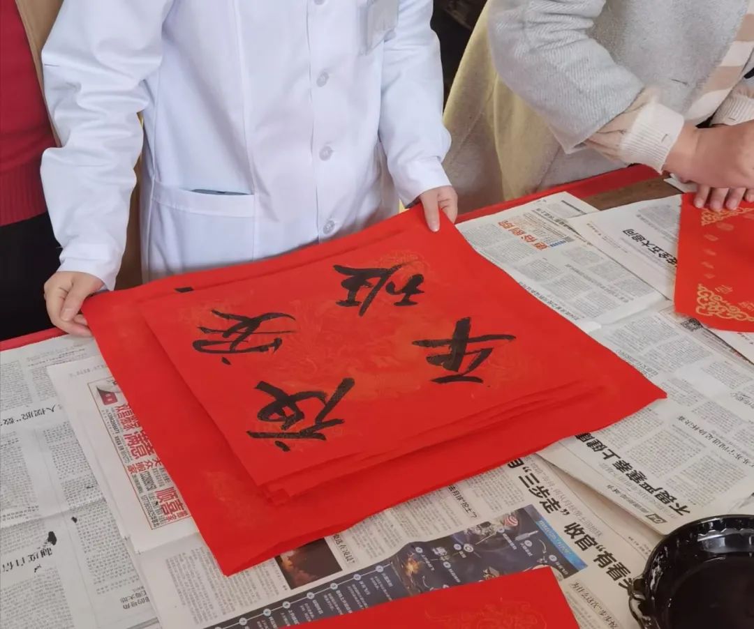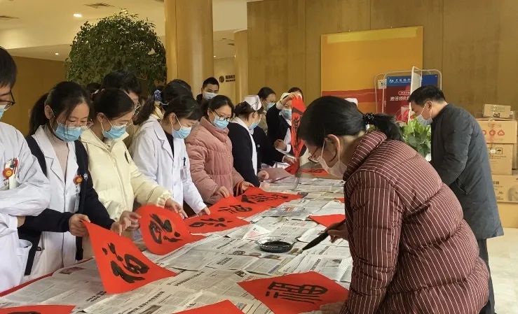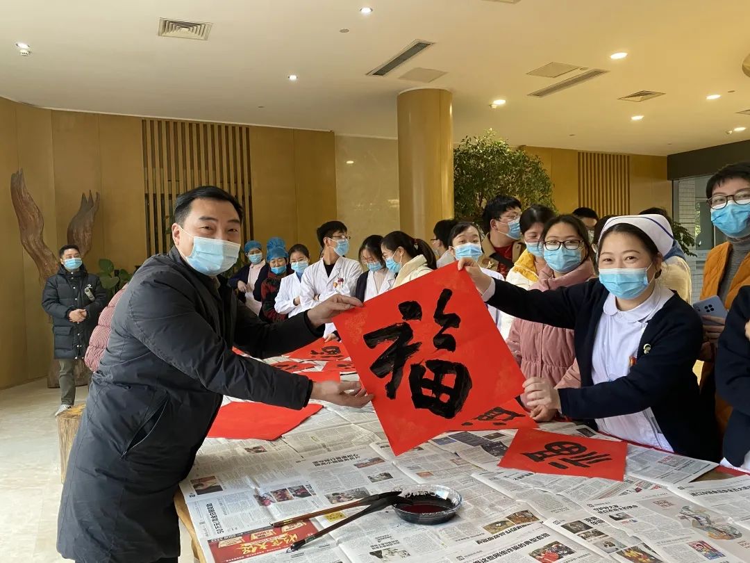 當(dāng)天,開發(fā)區(qū)書法協(xié)會(huì)的書法家也應(yīng)邀來到現(xiàn)場,揮毫潑墨,為醫(yī)護(hù)人員寫福字和春聯(lián),受到了大家的熱捧。書法家們有求必應(yīng),按照醫(yī)護(hù)人員的想法定制了醫(yī)護(hù)專屬的新春福字——“逢考必過”、“夜班平安”,這些吉祥話都代表著他們最真誠的心愿。不少醫(yī)護(hù)人員帶著任務(wù)來,替尚在工作崗位上忙碌著的同事們領(lǐng)上一份新年祝福。