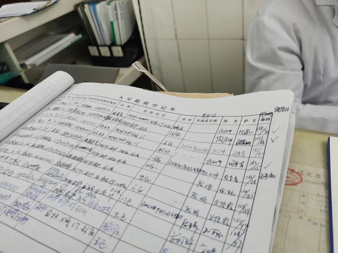 △搶救記錄本上滿滿的登記信息