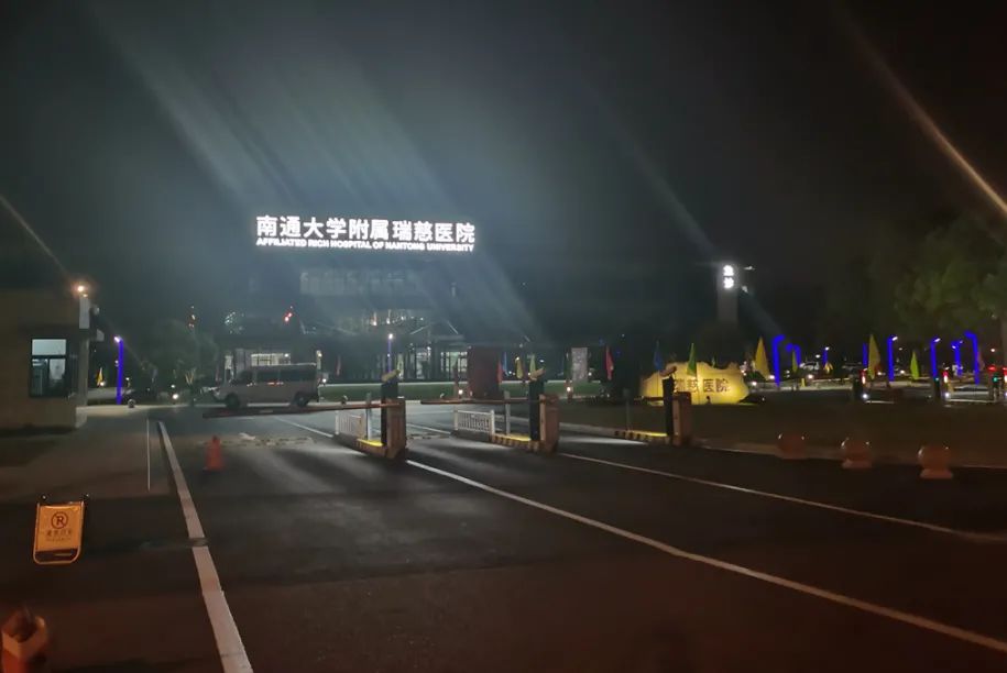 △深夜里,“南通大學(xué)附屬瑞慈醫(yī)院”10個(gè)大字顯得格外明亮。