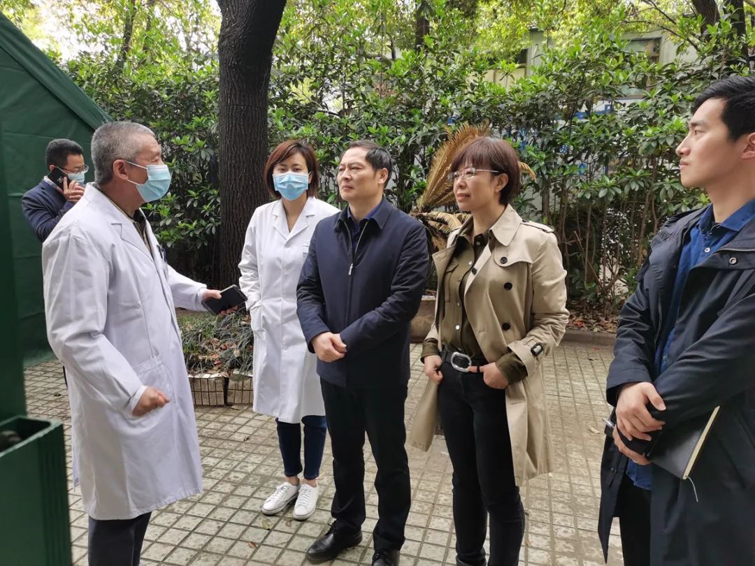 △圖為:開發(fā)區(qū)管委會副主任劉鋒一行來院視察、指導預防接種門診建設、運行工作。