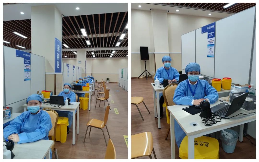 △圖為:我院護士在開發(fā)區(qū)新冠疫苗集中接種點支援。