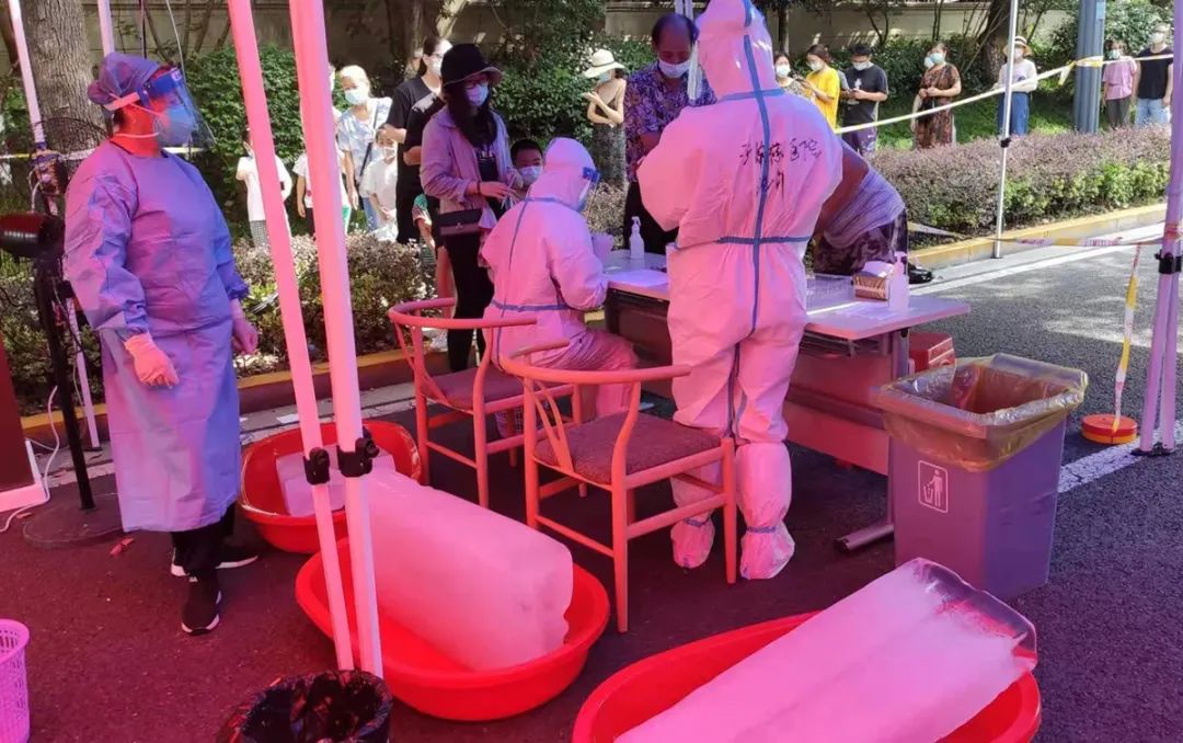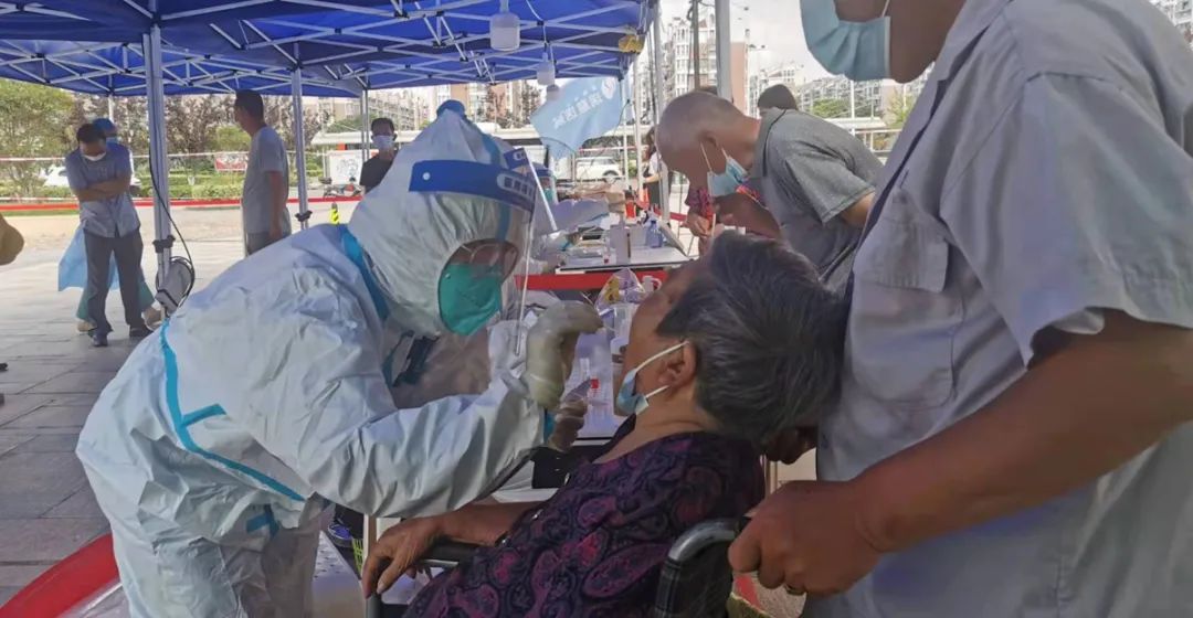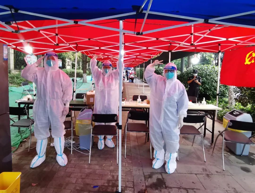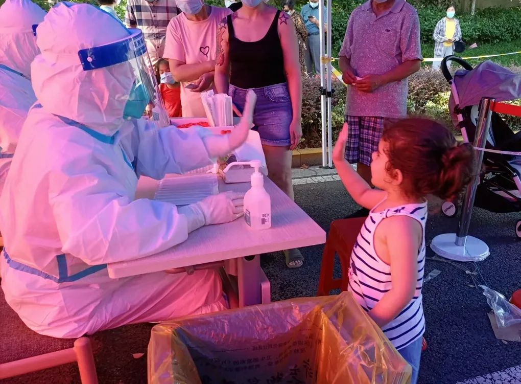 社區(qū)工作人員和志愿者忙前跑后,對(duì)醫(yī)務(wù)人員們照顧有加。即使等待時(shí)間很長(zhǎng),居民們也毫無(wú)怨言,對(duì)醫(yī)務(wù)人員們展現(xiàn)出了最大的善意和包容,采集離開(kāi)時(shí),往往還不忘說(shuō)一句,“謝謝“,“你們辛苦了”,只是簡(jiǎn)單的交流,卻讓姑娘們備受鼓舞。