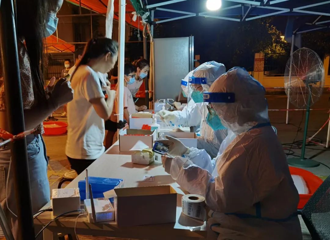 8月8日凌晨3點(diǎn),或許你還睡夢(mèng)正酣,瑞慈“娘子軍”已經(jīng)被鬧鐘叫醒,出發(fā)趕往各個(gè)采集點(diǎn),4點(diǎn)準(zhǔn)時(shí)就位。全員檢測(cè)忙碌是必然的,第一天恰逢周末,各采集點(diǎn)中途幾乎都沒(méi)有停歇,核酸采樣一直持續(xù)到了深夜12點(diǎn),首日就完成了近6萬(wàn)人次的采集量。