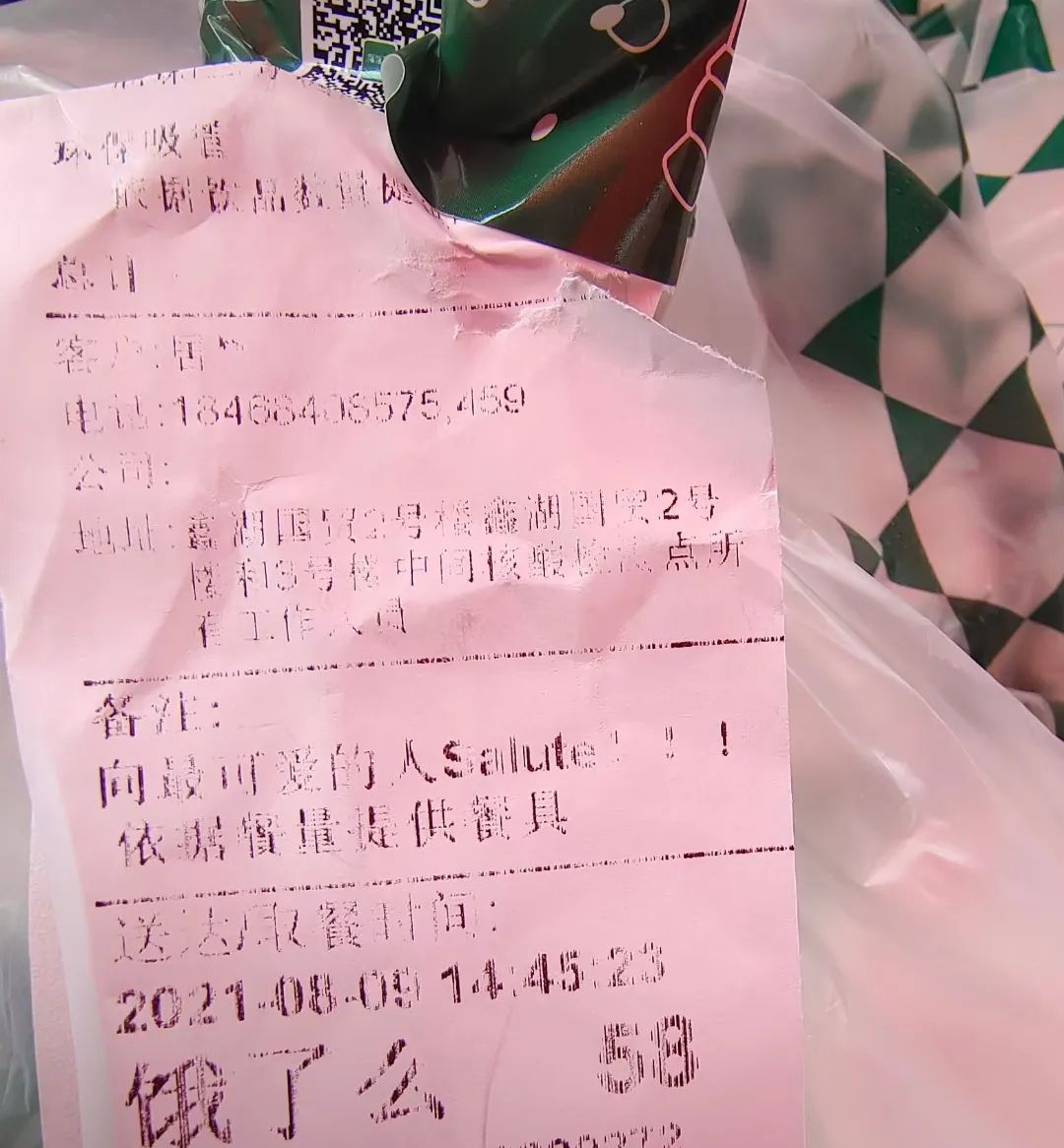 新開(kāi)街道景瑞白金籃球場(chǎng)采集點(diǎn)的組長(zhǎng)仲偉瑩護(hù)士長(zhǎng)說(shuō),8月9日早上五點(diǎn)多,一個(gè)來(lái)采核酸的羞澀小伙兒,給她們送來(lái)一大袋的巧克力,當(dāng)天下午又有熱心市民給她們點(diǎn)了飲料外賣,雖然不知道他們的姓名,在場(chǎng)的組員依然感受到了濃濃的關(guān)愛(ài)。
