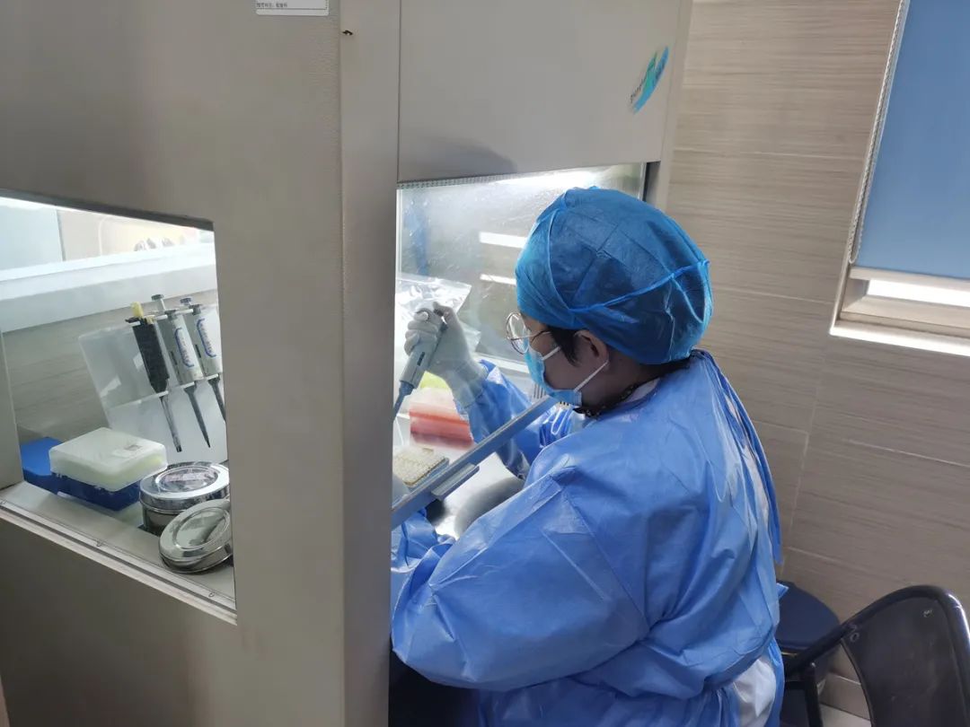 穿著密不透風(fēng)的全套防護(hù)裝備,他們?cè)趯?shí)驗(yàn)室一坐就是將近六個(gè)小時(shí)。因?yàn)椴煌5刂貜?fù)加樣槍吸取標(biāo)本的動(dòng)作,檢驗(yàn)醫(yī)師的大拇指都腫了起來(lái)。出了PCR實(shí)驗(yàn)室后,直到所有樣本的擴(kuò)增檢測(cè)結(jié)果都無(wú)異常才敢放心離開(kāi)。即使已十分疲憊,但檢驗(yàn)人的那份嚴(yán)謹(jǐn)和責(zé)任心卻絲毫不減,因?yàn)槊恳环輽z驗(yàn)結(jié)果都容不得絲毫的差錯(cuò)。