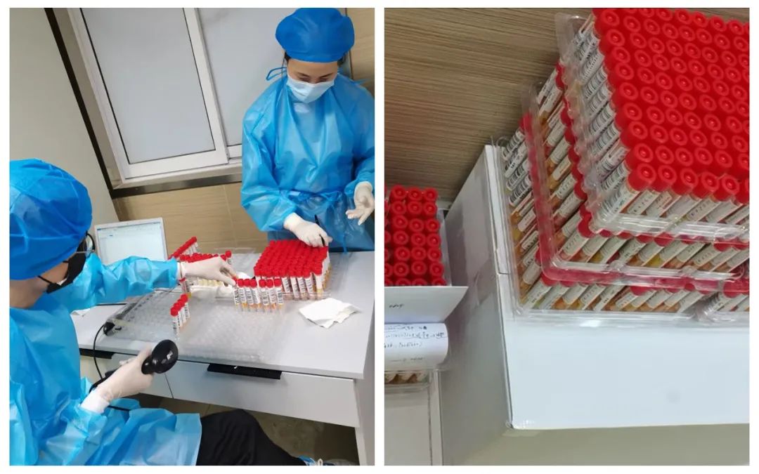 因?yàn)楦鞑杉c(diǎn)結(jié)束時(shí)間都較晚,每日午夜,都會(huì)有一批集中采集的核酸樣本送到醫(yī)院,核對(duì)標(biāo)本,錄入信息,這就是個(gè)大工程。連續(xù)兩天,工作人員們都是等到最后一批樣本送達(dá),忙碌到凌晨3點(diǎn)將當(dāng)日的信息錄入完畢。為了保證在24小時(shí)內(nèi)完成送達(dá)樣本的檢測(cè),檢驗(yàn)人員火力全開(kāi),全天三班倒運(yùn)轉(zhuǎn)。