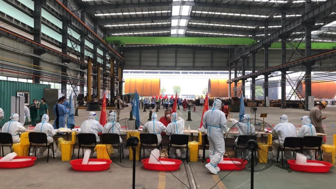 兩天的高強(qiáng)度采集工作結(jié)束后,第三天30名護(hù)理人員又起大早趕往了老洪港,為韓通、惠生、振華三家大型企業(yè)的員工進(jìn)行了核酸集中采樣。
