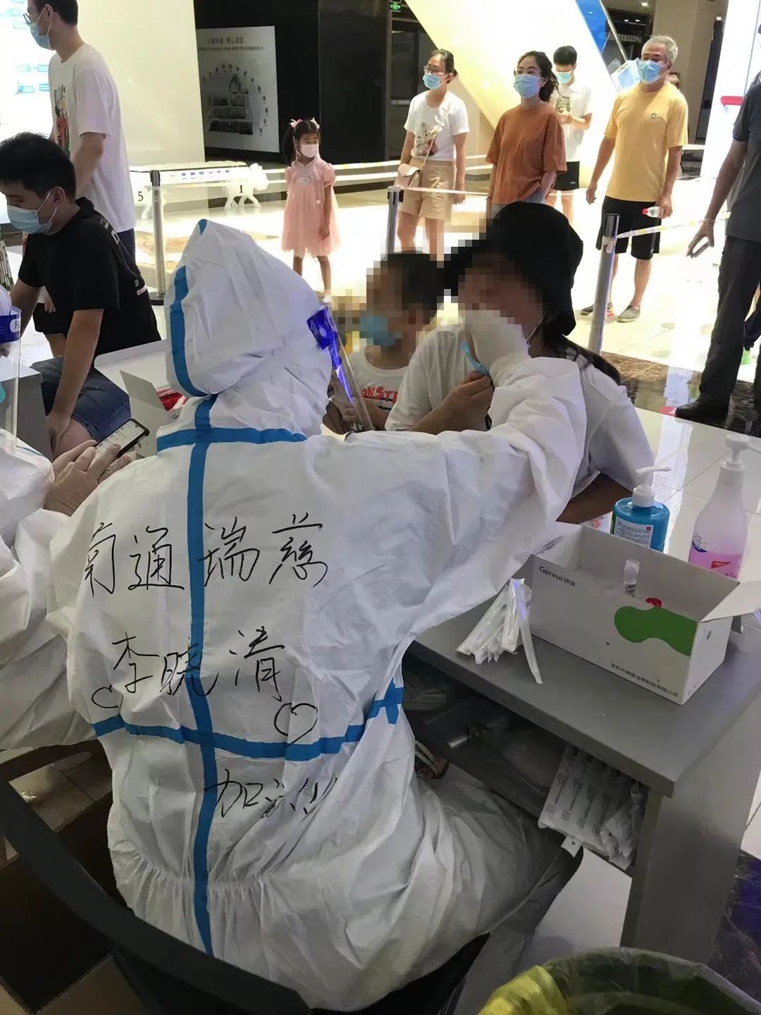那天天氣很熱,老小區(qū)只有樓梯,隊(duì)員們需要穿著防護(hù)服爬上6、7層的老樓,因?yàn)榉稚⒃诓煌臉菞澲校齻冞€得穿著防護(hù)服徒步走到下一戶人家。防護(hù)服必須一戶一換,采完一戶,衣服就濕透了。不少隊(duì)員都出現(xiàn)了頭暈、惡心的情況,隊(duì)員李曉清的情況最嚴(yán)重,走了三家之后就支撐不下去了,四肢無力,舌頭發(fā)麻。