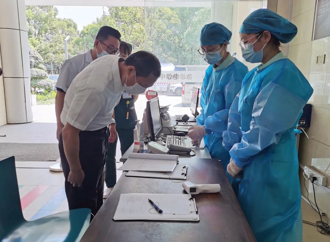 9月30日上午,南通經(jīng)濟(jì)技術(shù)開發(fā)區(qū)管委會(huì)劉鋒副主任率隊(duì)來院,對(duì)我院節(jié)前疫情防控和安全生產(chǎn)工作進(jìn)行檢查指導(dǎo),并向奮戰(zhàn)在一線的醫(yī)務(wù)工作者送上節(jié)日的祝福。開發(fā)區(qū)疫情防控指揮部、開發(fā)區(qū)疾控中心、開發(fā)區(qū)安監(jiān)局、開發(fā)區(qū)消防大隊(duì)領(lǐng)導(dǎo)參與檢查,我院相關(guān)分管領(lǐng)導(dǎo)及科室負(fù)責(zé)人陪同檢查。