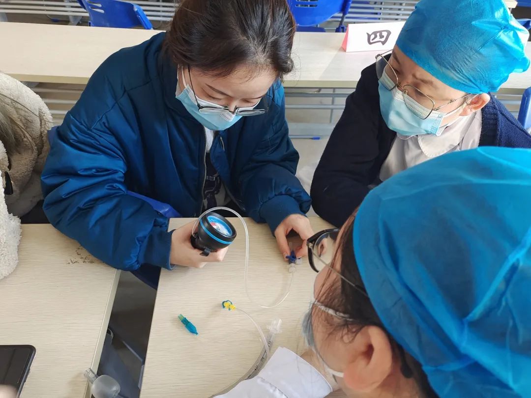 隨后29名學(xué)員分為4組進(jìn)行操作培訓(xùn)和練習(xí),急診急救小組組員陳毛鳳、急診科護(hù)士長劉麗及陸燁華分別圍繞簡易呼吸器七步檢測法,簡易呼吸器的臨床使用適應(yīng)癥及如何規(guī)范使用,氣管切開置管的護(hù)理,氣囊壓的監(jiān)測和管理等主題進(jìn)行了講解和操作示范,在理論學(xué)習(xí)的基礎(chǔ)上結(jié)合操作實(shí)踐,加強(qiáng)記憶,掌握要領(lǐng)。