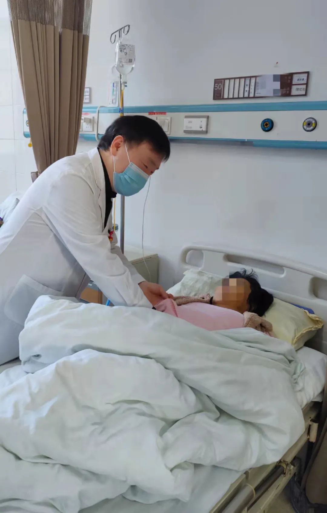 孫主任正在檢查患者的病情