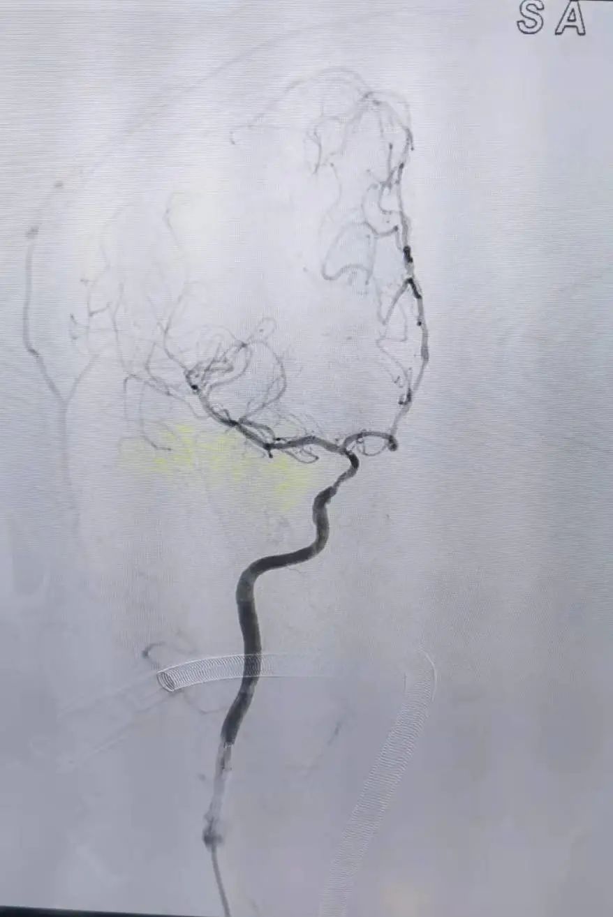 醫(yī)院立即開通卒中綠色通道,卒中團(tuán)隊(duì)根據(jù)頭顱CTA+CTP提示,發(fā)現(xiàn)陳大叔左側(cè)頸內(nèi)動(dòng)脈重度狹窄伴左側(cè)大腦中動(dòng)脈閉塞,建議立即進(jìn)行DSA+機(jī)械取栓術(shù)。征得家屬同意后把陳大叔送入介入導(dǎo)管室,當(dāng)天晚上18:45開始行全腦血管造影,隨即進(jìn)行了機(jī)械取栓術(shù)+頸動(dòng)脈支架植入術(shù)。19:40,手術(shù)結(jié)束,術(shù)后陳大叔頭顱CT無出血,右肢體肌力較術(shù)前有改善。