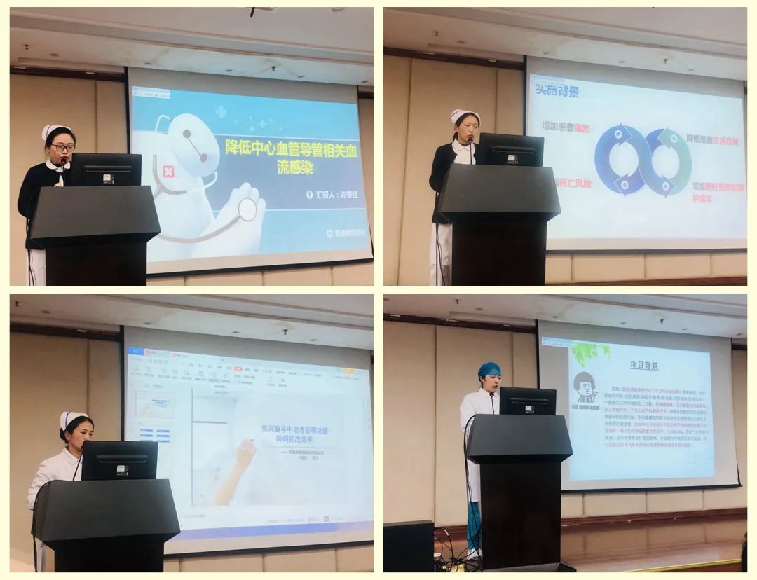 活動中,護理人員圍繞諸如患者誤吸、吞咽功能改善、服藥依從性、疼痛評分執(zhí)行、中心靜脈導(dǎo)管護理、病區(qū)噪音、院內(nèi)壓力性損傷等臨床實踐、護理質(zhì)控與督查中發(fā)現(xiàn)的有關(guān)護理質(zhì)量、護理安全和病人就醫(yī)體驗相關(guān)方面問題,采用品管圈、PDCA、失效模式等多種質(zhì)量管理工具以PPT的形式,向大家展示各護理團隊2021年度開展質(zhì)量改善項目活動以來所取得的成果。