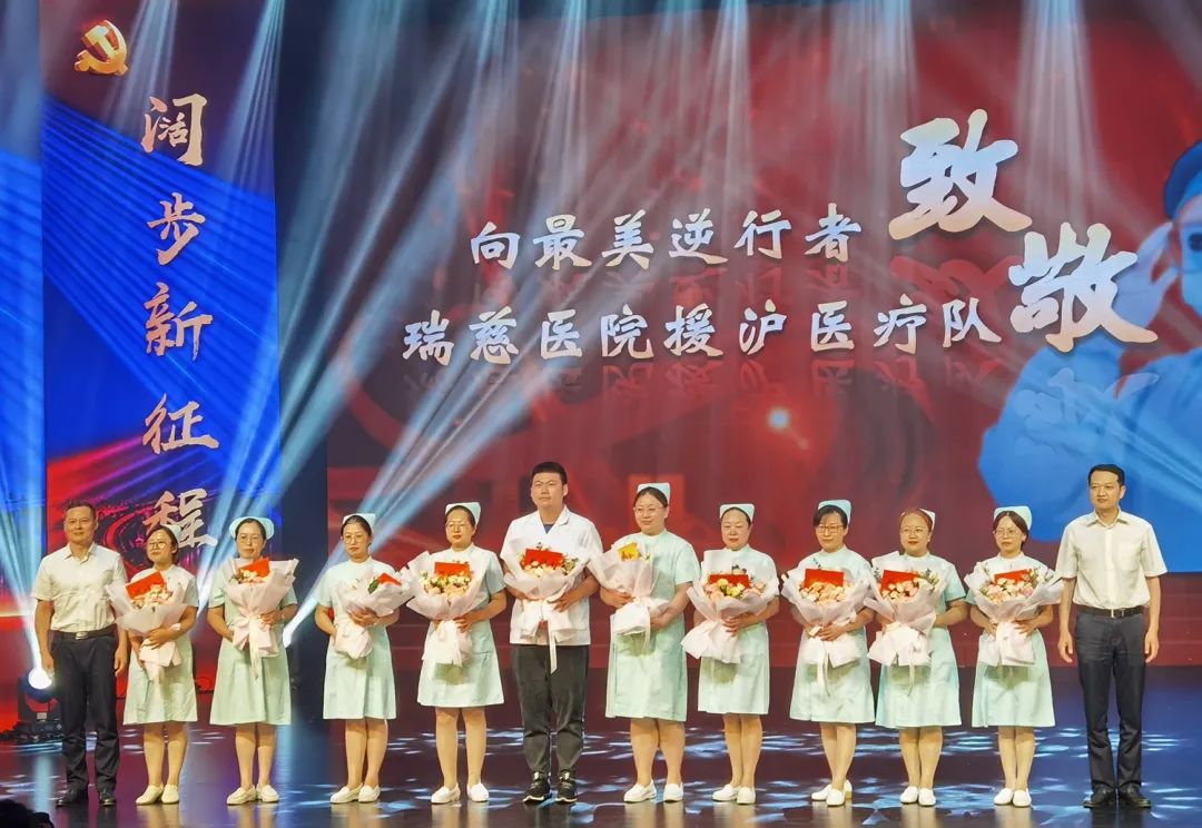 在這群閃耀的“明星”中,尤為醒目的是馳援抗疫一線守“滬”的醫(yī)務(wù)工作者——瑞慈醫(yī)院援滬醫(yī)療隊(duì)。大會(huì)授予他們“最美逆行者”稱號(hào),表彰他們“生命至上,人民至上”的偉大抗疫精神,對(duì)他們的仁心厚德、挺身而出、無畏信念、不負(fù)使命的崇高品質(zhì)致以深深的敬意。