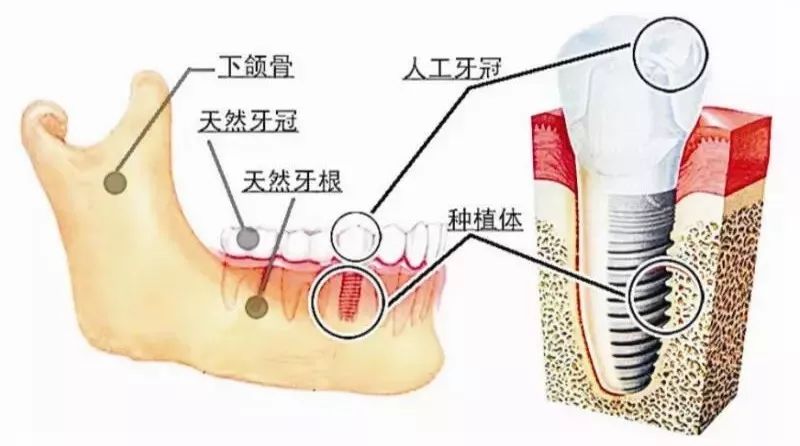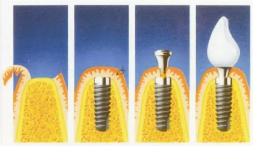 種植牙主要由種植體、基臺、烤瓷冠和固位螺絲組成。在缺牙區(qū)牙床內以外科手術的方式植入種植體(人工牙根),經過2-3個月金屬牙根與周圍骨組織融合后,就能穩(wěn)固地支撐上部烤瓷冠,其外觀、功能猶如天然牙齒。