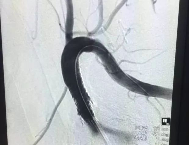 通過(guò)術(shù)中血管造影可以發(fā)現(xiàn),支架植入前后對(duì)比十分明顯。