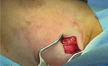 上圖為:傳統(tǒng)手術(shù)傷口(3—5厘米)
