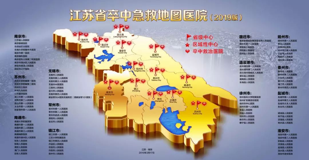 為此,2019年3月,江蘇省卒中協(xié)會(huì)發(fā)布了江蘇省卒中急救地圖。地圖的發(fā)布,將有助于打造“區(qū)域黃金時(shí)間救治圈”,卒中急救地圖發(fā)布,致力于實(shí)現(xiàn)“3個(gè)1小時(shí)”的急救時(shí)間窗,即發(fā)病到呼救不超過1小時(shí),院前轉(zhuǎn)運(yùn)不超過1小時(shí),入院到給藥不超過1小時(shí)。救命地圖,切記于心!