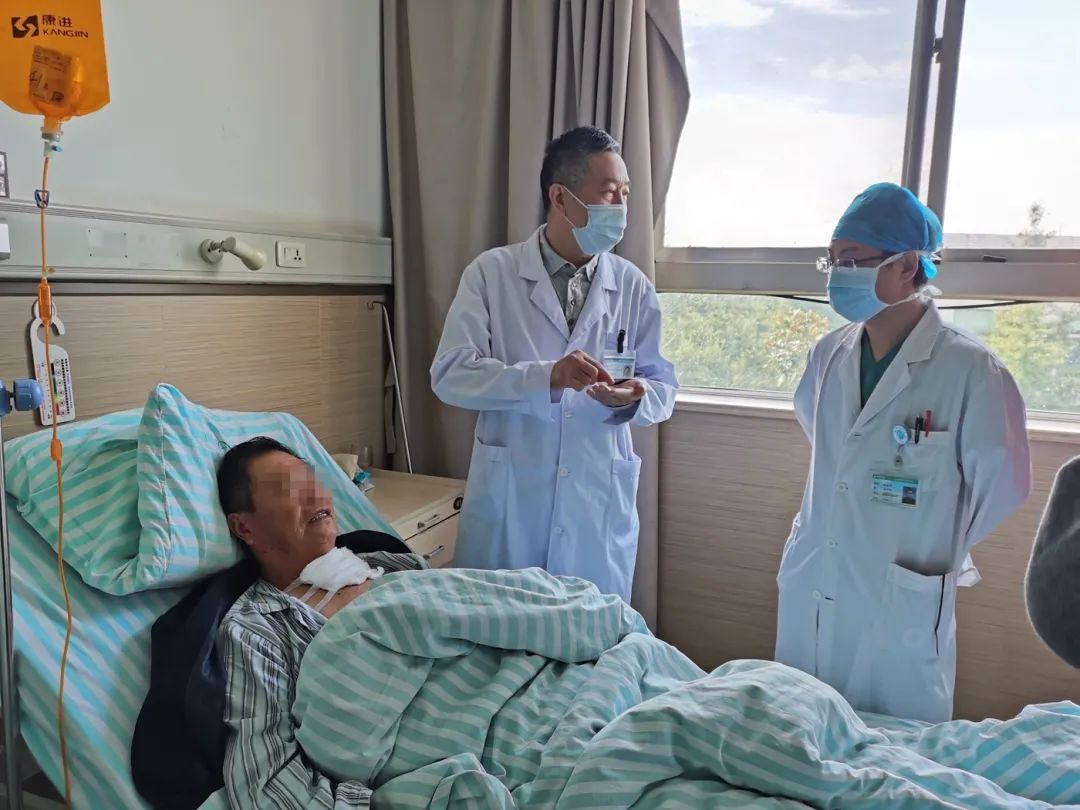鄭起教授目前也是南通瑞慈腫瘤醫(yī)院的腫瘤外科主任,每周一都會(huì)在瑞慈坐診。對(duì)于丁爺爺?shù)牟∏?,鄭教授十分關(guān)心,10月26日一早就去病房查房,觀察老人刀口恢復(fù)情況。這種巨大的甲狀腺腫塊較為少見,萬幸的是,老人的腫瘤是良性的,手術(shù)恢復(fù)以后,只需要定期來醫(yī)院復(fù)查甲狀腺功能。