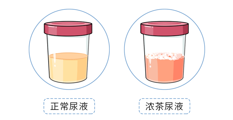 3、小便變色:正常的小便顏色是清澈,稍微有點(diǎn)黃,如果尿液像濃茶、醬油一樣的顏色,要警惕橫紋肌溶解癥的可能。