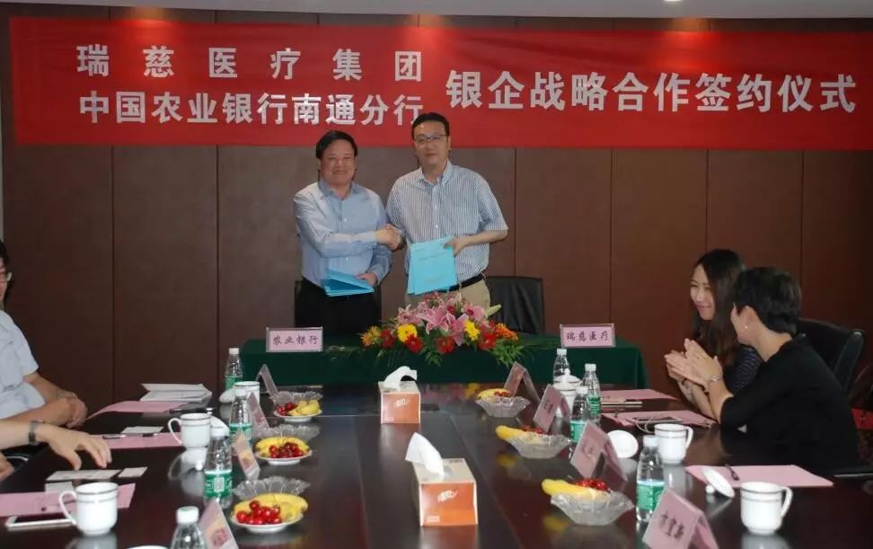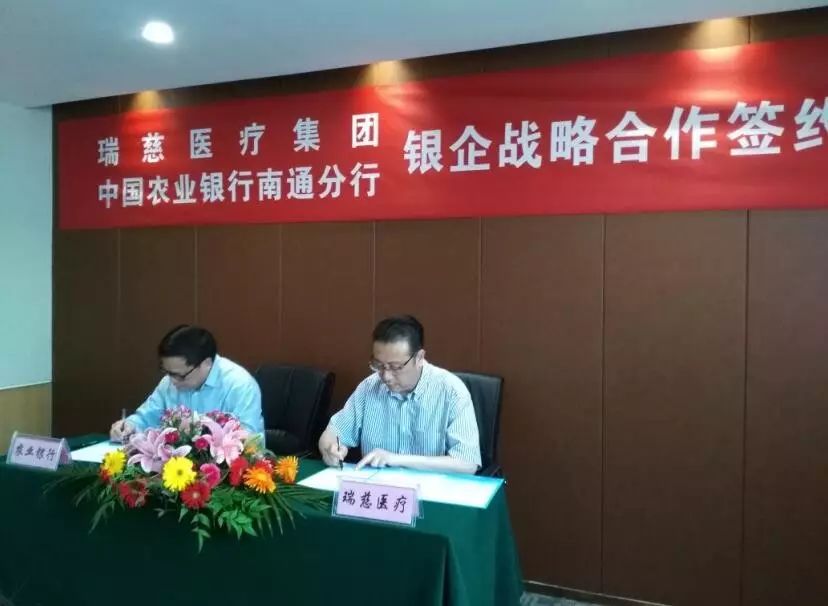 6月18日下午,瑞慈醫(yī)療集團(tuán)與中國農(nóng)業(yè)銀行南通分行在南通瑞慈醫(yī)院舉行了銀企戰(zhàn)略合作簽約儀式。