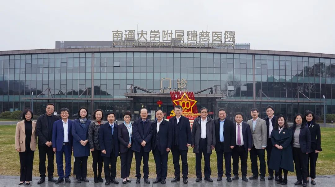 △圖為:復(fù)旦大學(xué)上海醫(yī)學(xué)院及復(fù)旦大學(xué)各附屬醫(yī)院領(lǐng)導(dǎo)一行在瑞慈醫(yī)院合影留念