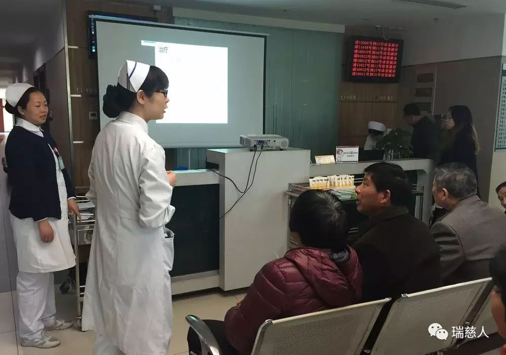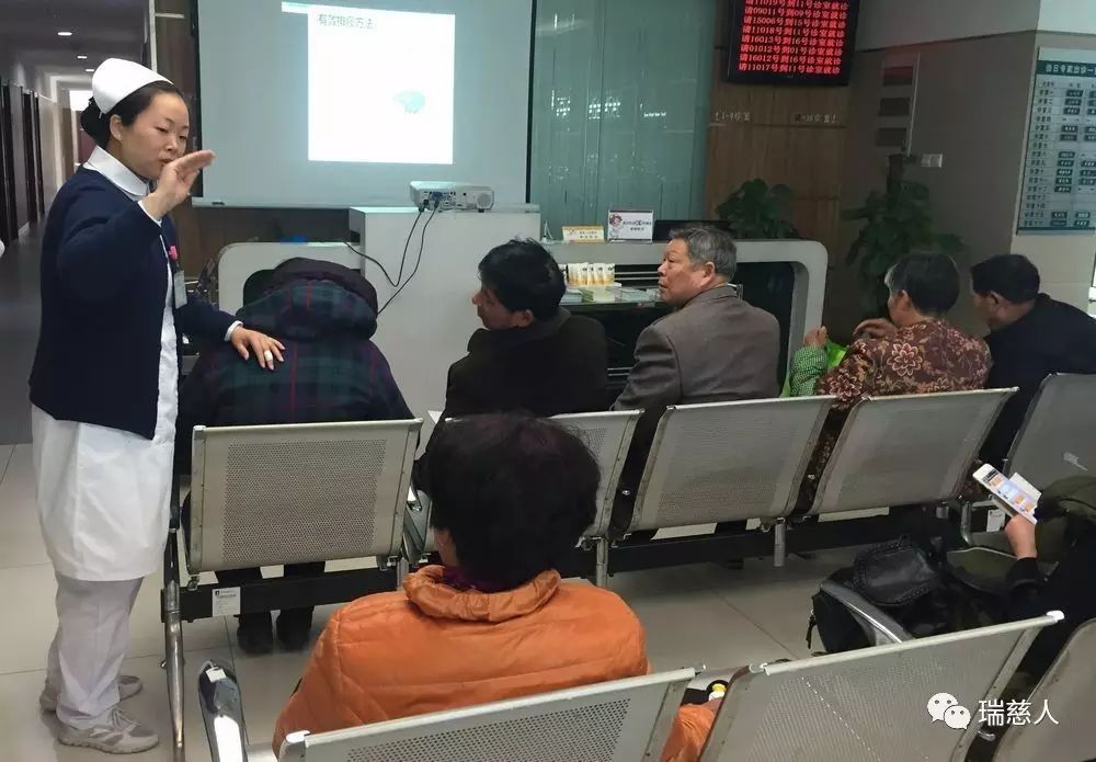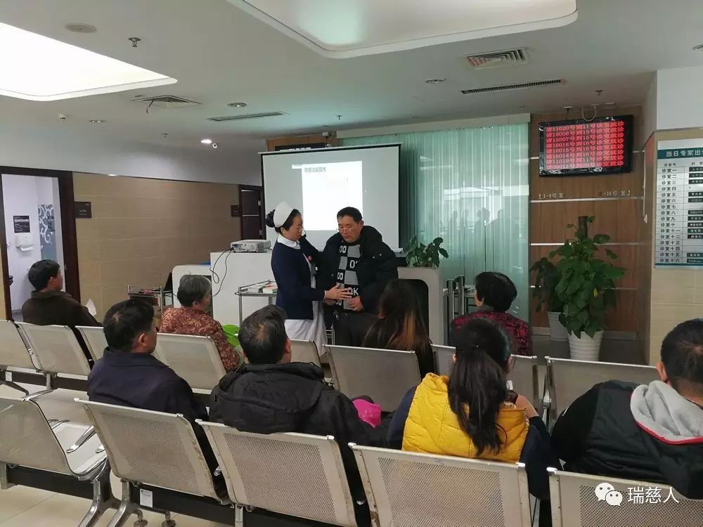 這是瑞慈醫(yī)院護(hù)理部自2015年便開展的健康大講堂活動(dòng),一塊投影幕布、幾疊宣教折頁(yè)、一部便攜式擴(kuò)音器、幾名醫(yī)護(hù)人員,各科輪流,時(shí)間地點(diǎn)主題自定,可以是在一樓門診大廳,也可以是在各個(gè)樓層的候診區(qū),向候診患者及家屬傳遞健康知識(shí),普及常見病、應(yīng)季疾病相關(guān)防治措施,幫助更多市民提高健康意識(shí),培養(yǎng)正確就醫(yī)理念。