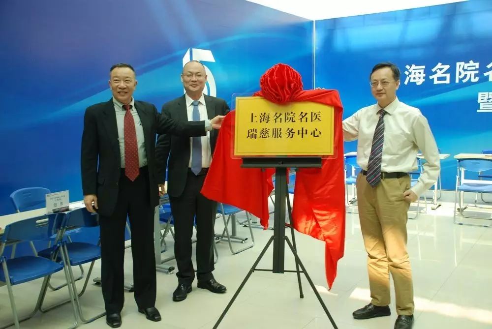 ↑圖為:瑞慈醫(yī)療集團執(zhí)行總裁盧振宇、瑞慈醫(yī)院院長趙林、上海專家代表宋冬雷共同為服務(wù)中心揭牌