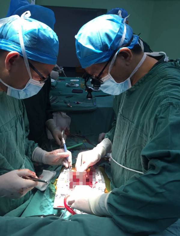 圖為:上海瑞金醫(yī)院心臟外科主任趙強(qiáng)與瑞慈醫(yī)院心外科團(tuán)隊(duì)共同為患者進(jìn)行手術(shù)
