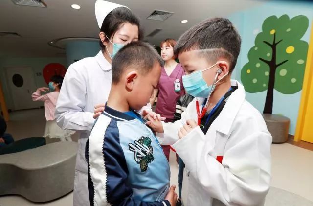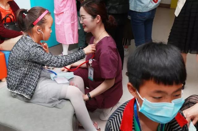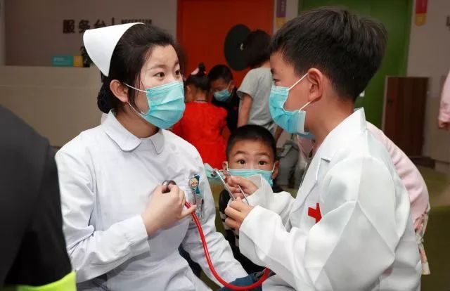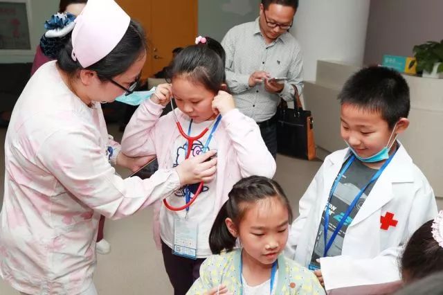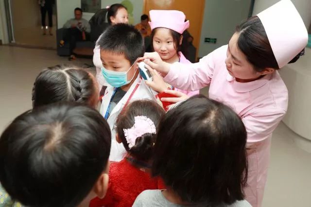 扮演“小醫(yī)生”、“小護士”,學習如何聽心跳、量耳溫、測血壓。
